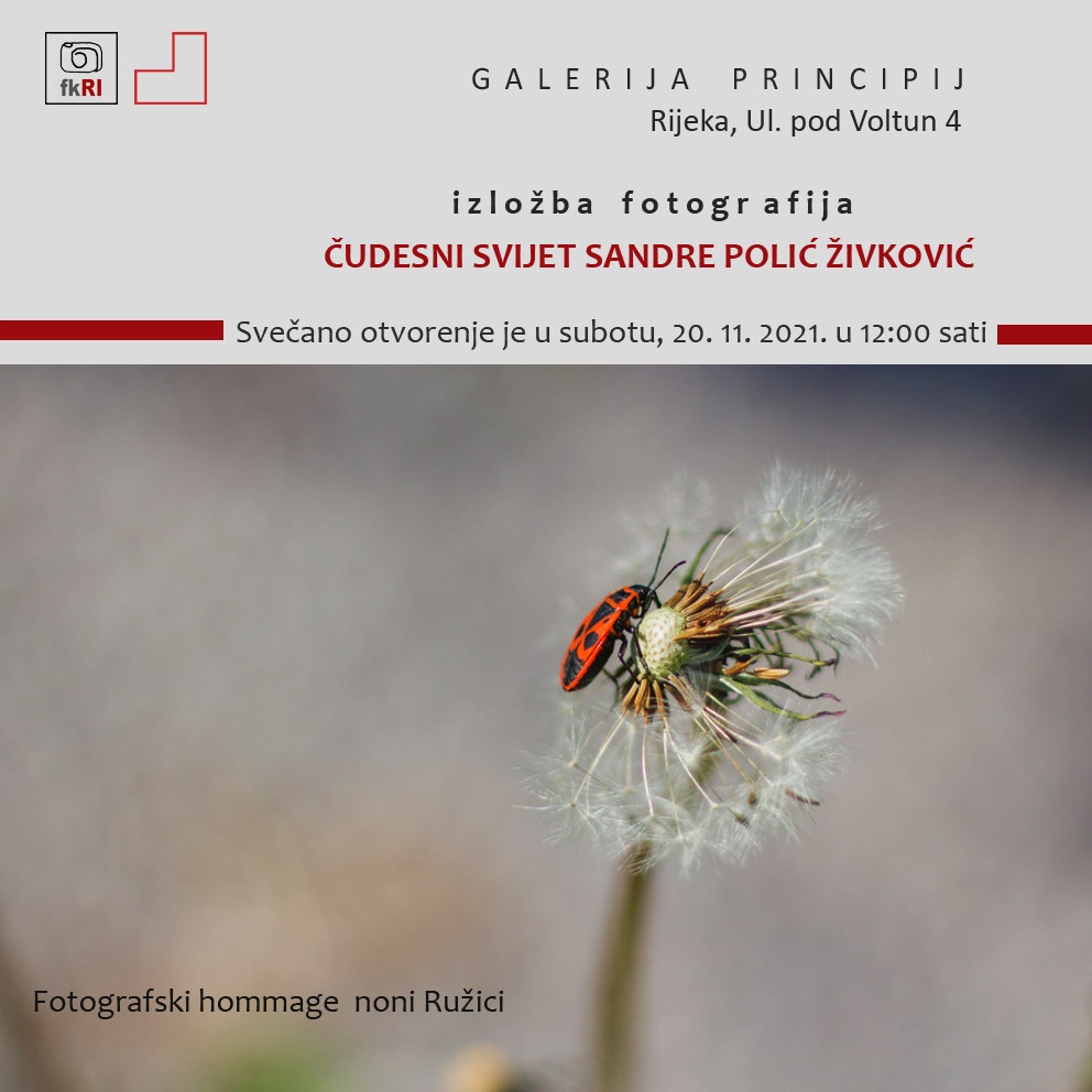 Izložba fotografija 'Čudesni svijet Sandre Polić Živković' održava se od 20. do 27. studenoga 2021. u riječkoj Galeriji Principij.