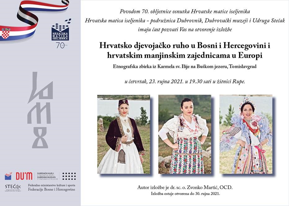 Izložba naziva „Hrvatsko djevojačko ruho u Bosni i Hercegovini i hrvatskim manjinskim zajednicama u Europi“ autora etnologa dr.sc.o. Zvonka Martića, održava se od 23. do 30. rujna 2021. u žitnici „Rupe“. Izložba predstavlja građu iz etnografske zbirke Samostana i duhovnog centra „Karmel sv. Ilije“ na Buškom jezeru u okolici Tomislavgrada, utemeljene s ciljem prikupljanja i čuvanja nošnji, nakita, čipke, građe o običajima, napjevima i plesovima Hrvata u Bosni i Hercegovini. Izložba je  multimedijalnog karaktera te, pored video i fotografskog materijala, prezentira djevojačke nošnje i nakit. Kustos izložbe je Ivica Kipre, dok je autor fotografija Jasmin Fazlagić.
