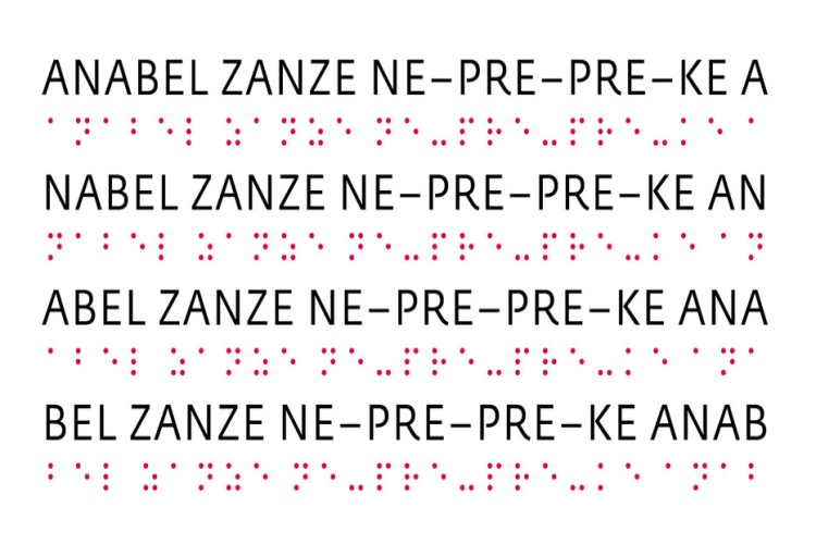 Izložba u Tiflološkom muzeju će prezentirati 15 radova koji komuniciraju sa slijepim i slabovidnim osobama, nastojeći dokinuti granice svjetova, tako da prepreke postanu NE-PRE-PRE-KE. U tu svrhu Zanze je prigrlila grafički znak Brailleovih slova i uobličila ih u umjetničku formu. Autorica je posebno za ovu izložbu napisala bilješke koje će biti dostupne putem QR kodova u katalogu izložbe. Sedam izloženih slika prilagođeno je za slijepe i slabovidne osobe taktilnim grafikama, umanjenim prikazima originala koje prate verbalni opisi izrađeni prema smjernicama dobre prakse koji se koriste za opise umjetničkih djela. I, konačno, putem QR kodova, apliciranih uz svako izloženo djelo, slijepim je osobama omogućeno da, njihovim skeniranjem, poslušaju opis i priču o svakom pojedinom djelu koju izgovara sama autorica.