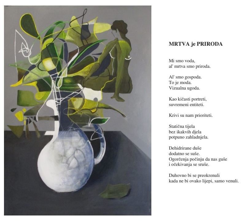 Izložba predstavlja jedinstven spoj poezije i slikarstva kroz koji autorica izražava vlastite emocije, stanja i razmišljanja, a s kojima se mnogi od nas mogu poistovjetiti. Slike su izvedene u kombiniranoj tehnici i često nadopunjuju pjesme i obrnuto – pjesme nadopunjuju najčešće likovno apstraktno utjelovljenu misao. Kroz pojedine pjesme (Reći svijetu, Pejsaž, MRTVA je PRIRODA) umjetnica vrlo jasno i decidirano progovara o problemima s kojima se svi koji žive u Hrvatskoj suočavaju u svojoj svakodnevnici.