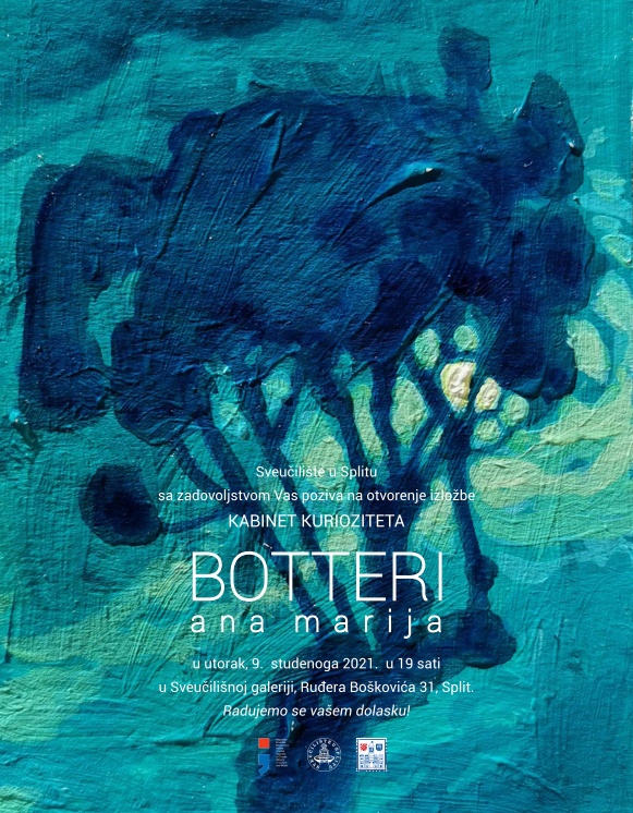 Izložba 'Kabinet kurioziteta' akademske slikarice Ane Marije Botteri otvara se 9. studenoga 2021. u Sveučilišnoj galeriji u Splitu, a moći će se pogledati do 25. studenoga 2021.
