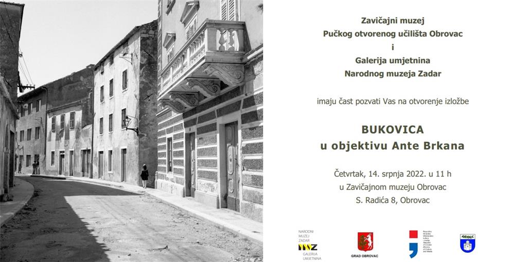Zavičajni muzej Pučkog otvorenog učilišta Obrovac i Galerija umjetnina Narodnog muzeja Zadar najavljuju otvorenje izložbe fotografija „Bukovica u objektivu Ante Brkana“ koje će se održati u četvrtak, 14. srpnja 2022. godine u Zavičajnom muzeju Obrovac, s početkom u 11 sati.