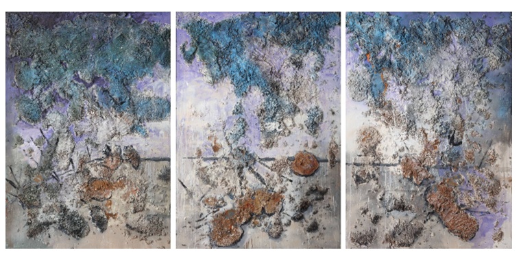 Fotografija triptiha Fedora Fischera - Aftermath I, kombinirana tehnika, 200 x 420 cm, 2022.