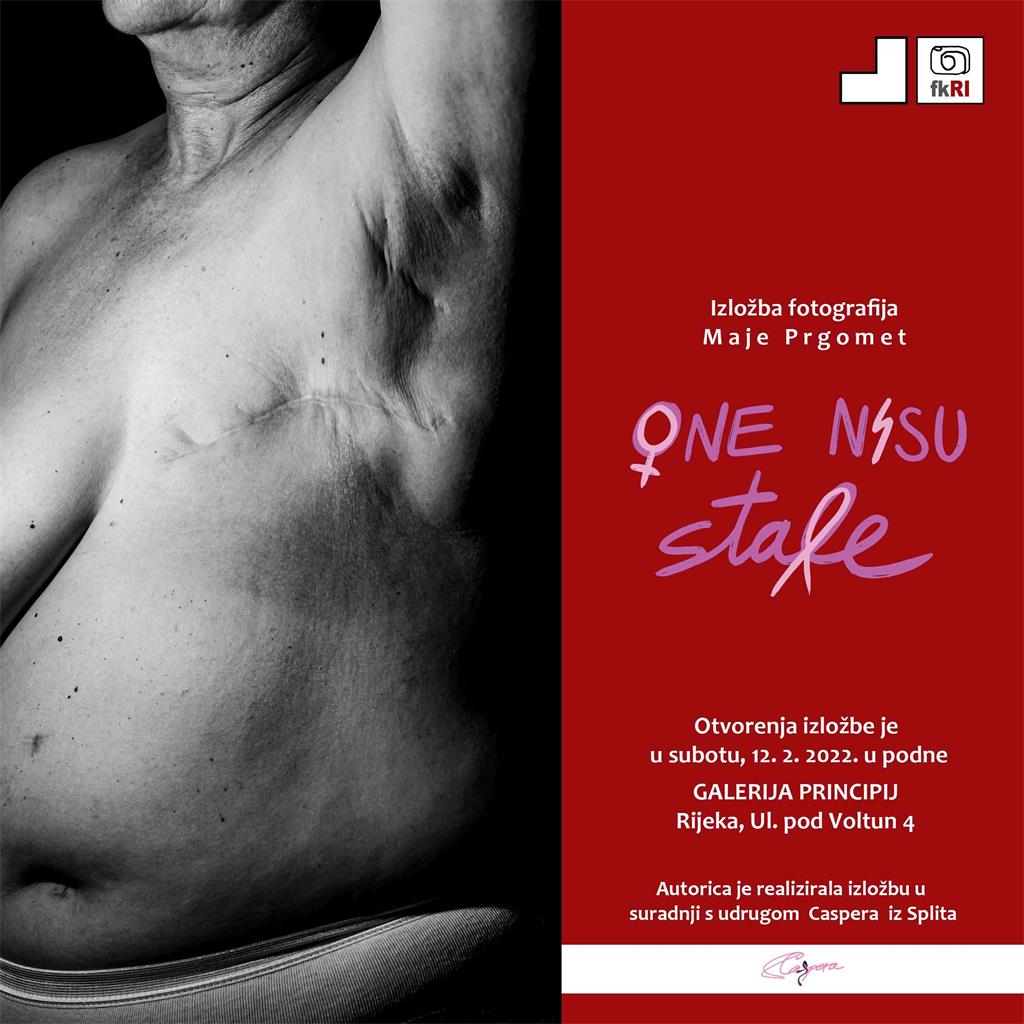Izložba 'One nisu stale' poznate splitske fotografkinje Maje Prgomet otvara se u subotu, 12. veljače 2022., u Galeriji Princij u Rijeci. Izložba je nastala u okviru kampanje koju provodi Caspera, udruga žena oboljelih i liječenih od karcinoma, pokrenute s ciljem podizanja svijesti o važnosti prevencije i brige za vlastito zdravlje, a posebno s ciljem osvještavanja društva o životu žene s karcinom.