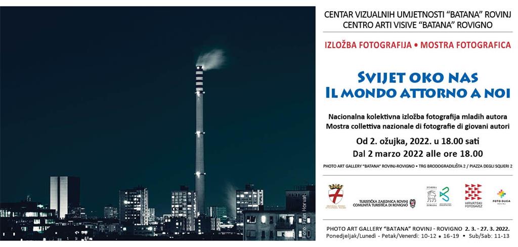 Nacionalna kolektivna izložba fotografija mladih autora 'Svijet oko nas' može se razgledati od 2. ožujka do 27. ožujka 2022. u izložbenom prostoru Photo Art Gallery 'Batana' u Rovinju.