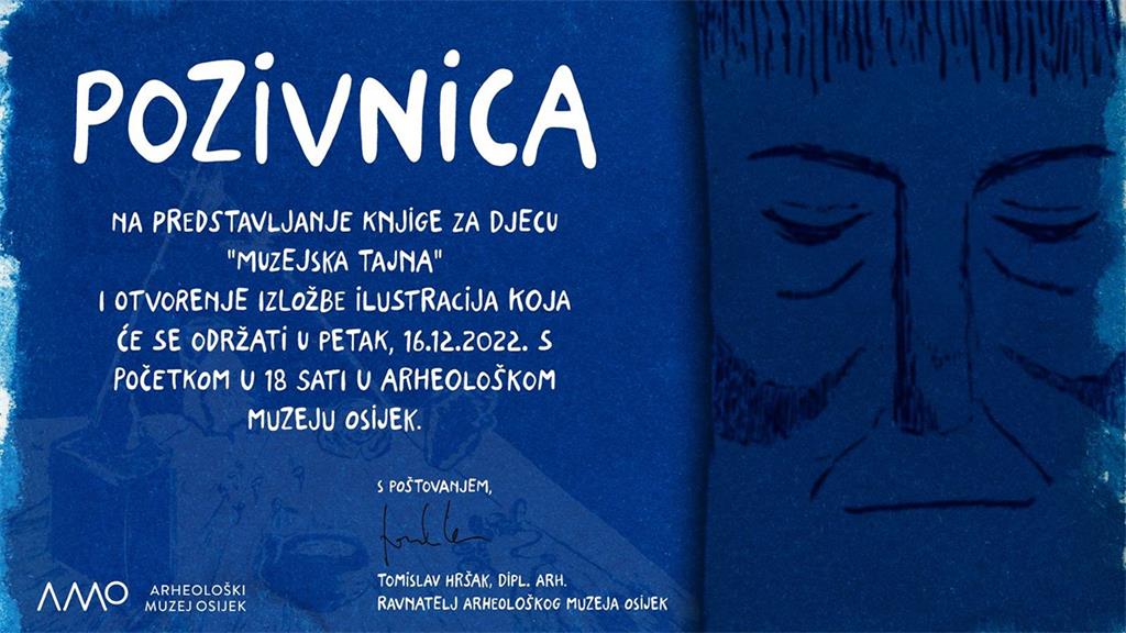 Predstavljanje ilustrirane knjige za djecu "Muzejska tajna" autora Josipa Kralika održat će se u petak, 16. prosinca u 18 sati. Uz predstavljanje knjige otvorit će se i izložba originala ilustracija koje su za knjigu izradili talentirani učenici Škole primijenjene umjetnosti i dizajna Osijek.