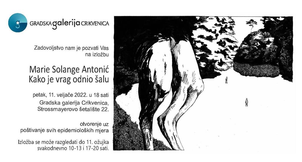 Samostalna izložba Marie Antonić naziva 'Kako je vrag odnio šalu' otvara se 11. veljače 2022. u Gradskoj galeriji Crikvenica, gdje će se moći pogledati do 11. ožujka o.g.