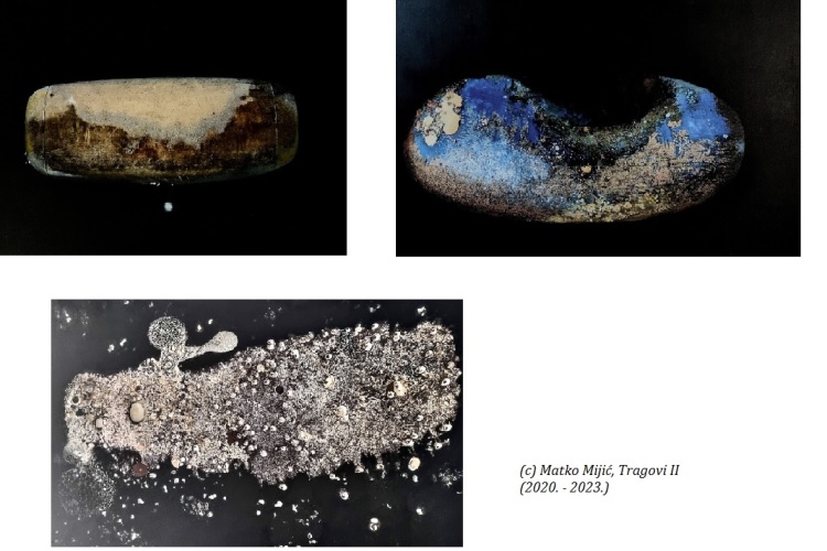Matko Mijić u prvim je „Tragovima“ iz 2016.  godine, lutajući svakodnevno srednjovjekovnim labirintom uskih ulica i prečaca Trogira, pronalazio slikovni svijet nevidljiv prolazniku. Nalazio ga je u ogrebotinama žbuke, u iscurcima vode iz  zida, tragu boje, korozijama, žbukanoj zakrpi … Bilježio ga je lećom objektiva, rastvarao ga je, dekomponirao, uvećavao do granice kada je motiv postajao neprepoznatljiv, postajući nešto drugo. Danas je došao do točke kada je pronašao svoj Aleph. Mjesto iz kojeg se simultano  može  sagledati čitav svijet,  svi svjetovi i sva vremena. „Ugledao sam malu kuglu gotovo nepodnošljivog sjaja“ pisao je Borges 1945. godine u istoimenoj pripovijesti. „Prvo sam mislio da se vrti; tada sam shvatio da je to iluzija … sav je prostor bio tu, stvaran u svojoj veličini. Vidio sam bujno more; vidio sam zoru i noć; vidio sam mnoštvo Amerike; vidio sam srebrnastu paučinu u središtu crne piramide; vidio sam rascjepkani labirint; vidio sam sva ogledala na zemlji; vidio sam grozdove, snijeg, duhan, gomile metala, paru; vidio sam konveksne ekvatorijalne pustinje i svako njihovo zrnce pijeska...“.