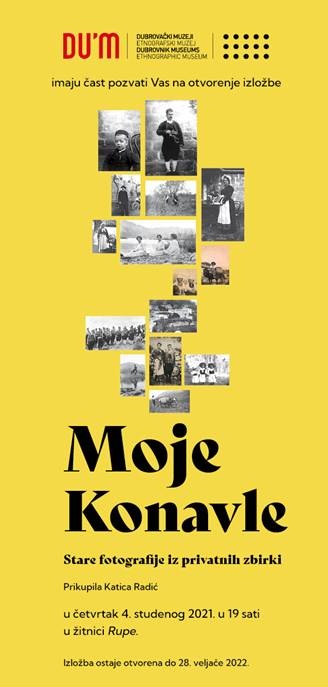 Izložba Dubrovačkih muzeja 'Moje Konavle - Stare fotografije iz privatnih zbirki – Prikupila Katica Radić' autorica Liljane Kovačić i Barbare Margaretić otvara se 4. studenoga 2021. u žitnici 'Rupe'.
