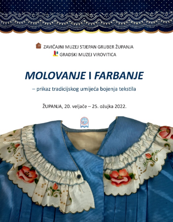Izložba Zavičajnog muzeja Stjepan Gruber u Županji i Gradskog muzeja Virovitica 'Molovanje i farbanje', koja prikazuje tradicijsko umijeće bojanja tekstila, održava se od 20. veljače do 25. ožujka 2022. u Županji.