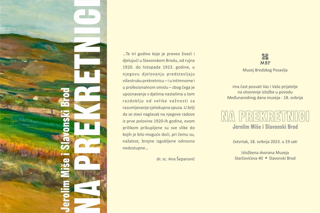 U izložbenoj dvorani Muzeja Brodskog Posavlja u Slavonskom Brodu, u četvrtak 18. svibnja otvara se izložba Na prekretnici - Jerolim Miše i Slavonski Brod.