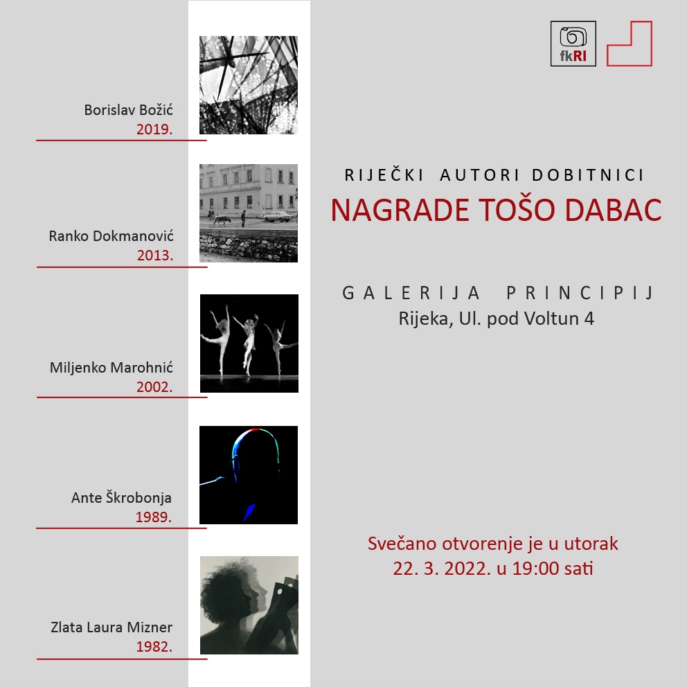 Izložba riječkih autora dobitnika Nagrade Tošo Dabac otvara se u utorak, 22. ožujka 2022., u 19 sati, u Fotoklubu Rijeka.