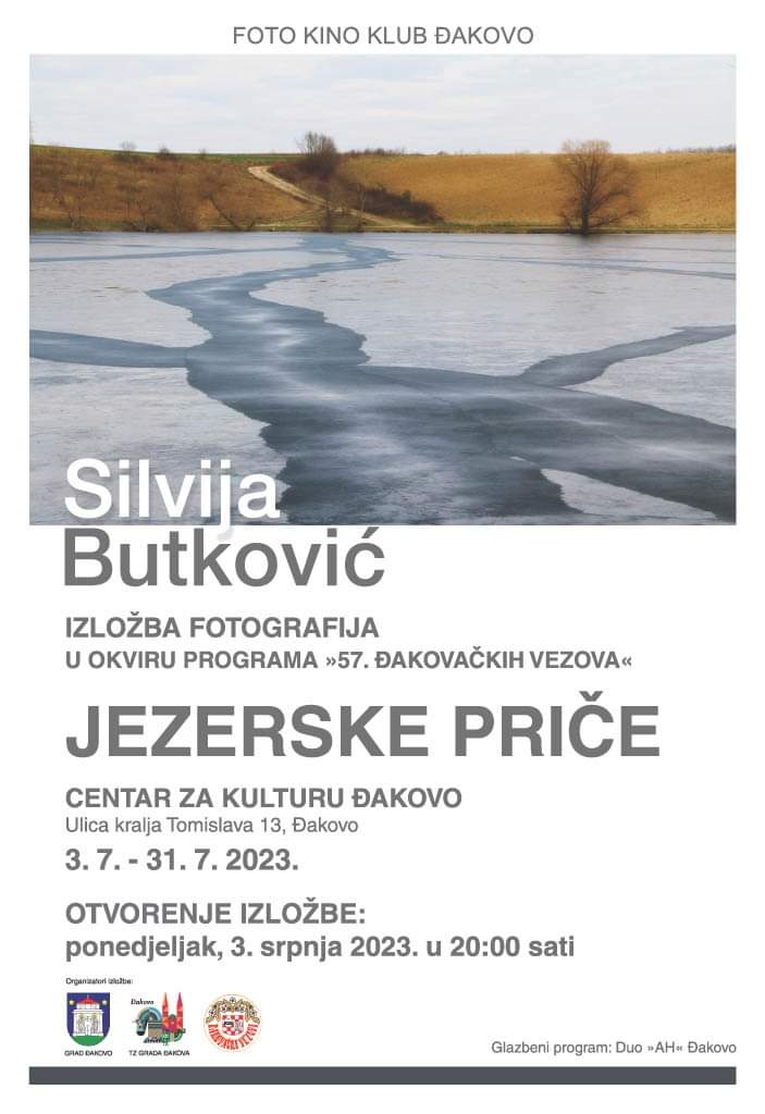 Izložba fotografija Silvije Butković 'Jezerske priče' otvara se u ponedjeljak 3. srpnja u 20 sati u Centru za kulturu Đakovo, u okviru programa 57. Đakovačkih vezova.