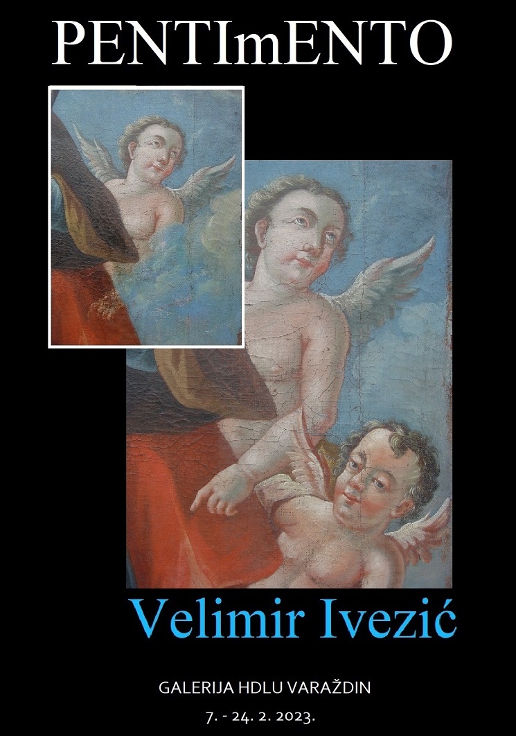 Izložba predmeta i fotografija restauratorskih radova varaždinskog akademskog umjetnika Velimira Ivezića pod nazivom „PENTImENTO/POKaJANJE ili o likovima koji nisu bili vidljivi“ bit će predstavljena od 7. do 24. veljače 2023. u Galeriji HDLU-a Varaždin.