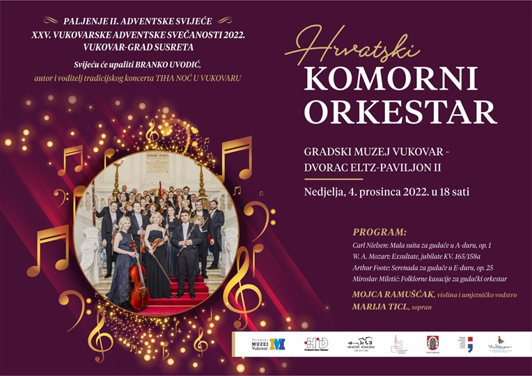 Gradski muzej Vukovar poziva na koncert Hrvatskog komornog orkestra u sklopu XXV. adventskih svečanosti grada Vukovara i paljenje II. adventske svijeće, 4. prosinca u 18 sati.