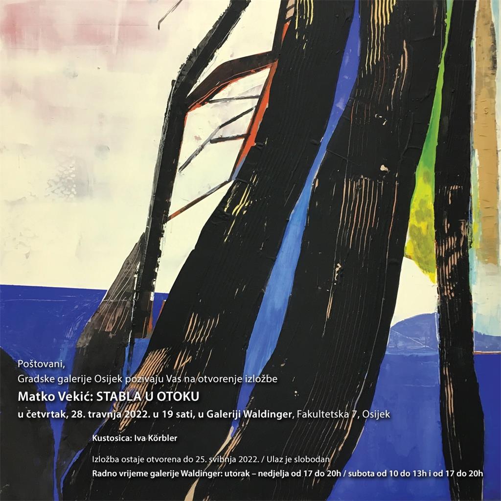 U godini obilježavanja petnaestogodišnjice redovnog izložbenog programa, Gradske galerije Osijek pripremaju izložbu Matka Vekića, jednog od najistaknutijih hrvatskih slikara mlađe generacije, dobitnika Grand Grix-a 6. bijenala slikarstva u prosincu 2021. Izložba se otvara u četvrtak, 28. travnja 2022., u Galeriji Waldinger gdje će se moći pogledati do 25. svibnja.
