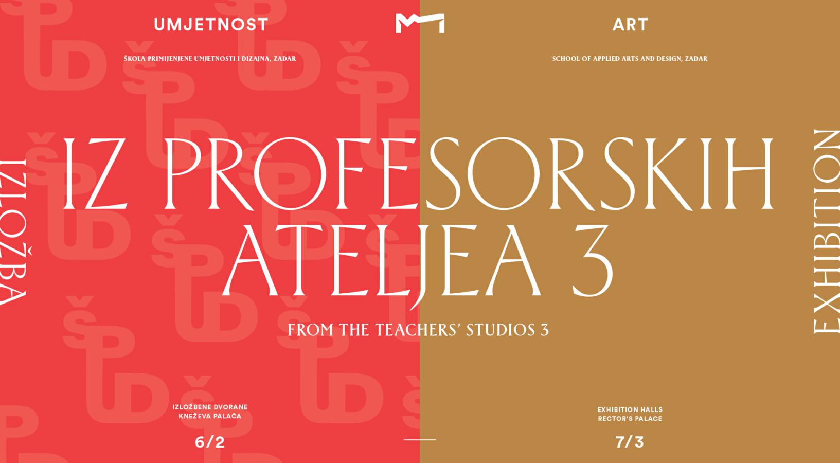 Izložbom nastavnika Škole primijenjene umjetnosti i dizajna u Zadru „Iz profesorskih ateljea 3“ nastavlja se bijenalni ciklus započet 2021. godine, s ciljem predstavljanja umjetničkog rada nastavnika stručnih predmeta izvan nastavnog procesa.