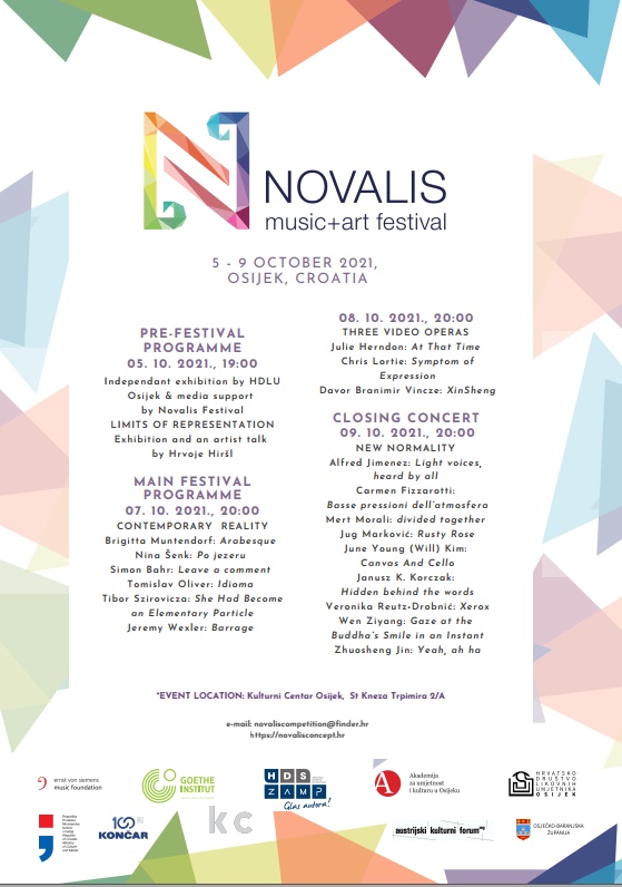 Peto izdanje Novalis music+art Festivala otvara se 7. listopada 2021. u Osijeku, a trajat će do 9. listopada. Festival je započeo pretprogramom - izložbom 'Limits of representation' umjetnika Hrvoja Hiršla u Kulturnom centru, u organizaciji HDLU-a Osijek.