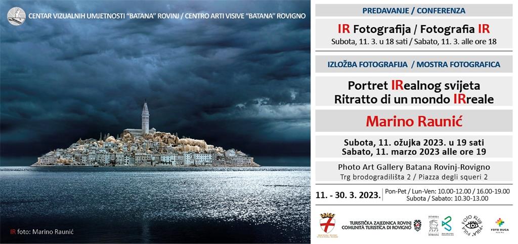 U subotu 11. ožujka u Galeriji 'Batana' u Rovinju održat će se predavanje Marina Raunića 'IR Fotografija' i otvorenje njegove izložbe 'Portret IRealnog svijeta'.
