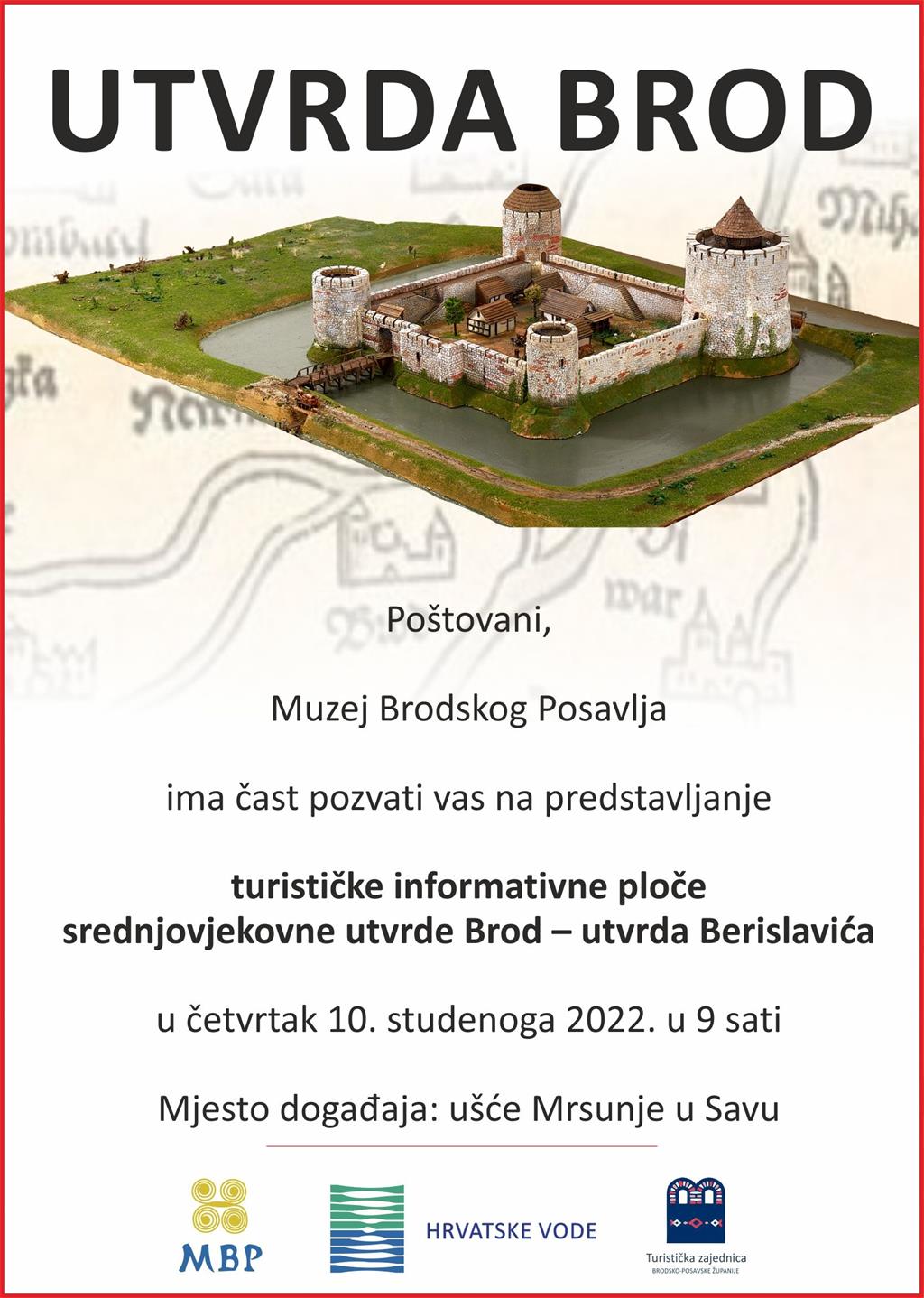 Predstavljanje turističke informativne ploče srednjovjekovne utvrde Brod - utvrda Berislavića održat će se 10. studenoga u 9 sati, na ušću Mrsunje u rijeku Savu.