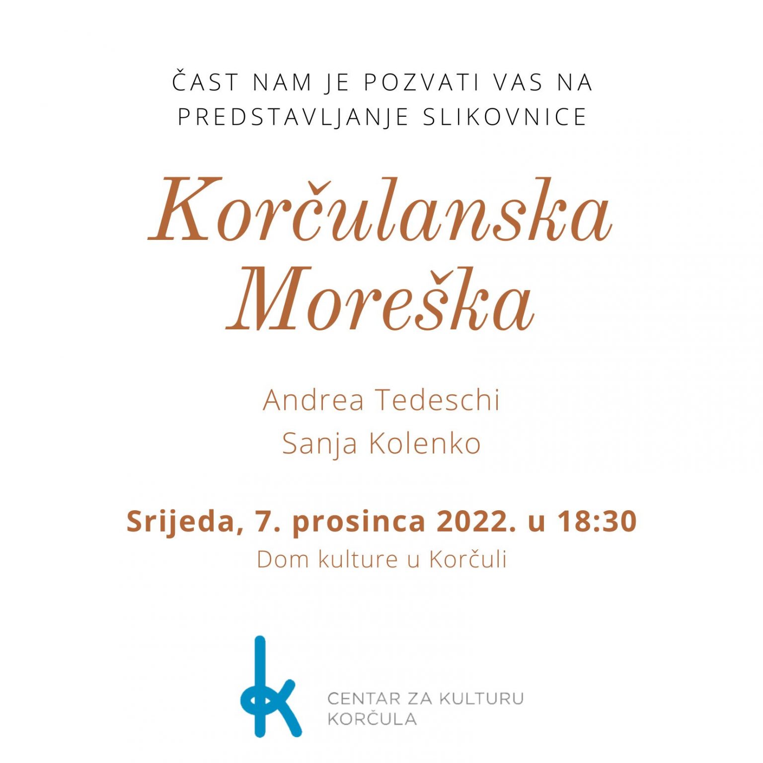 Predstavljanje slikovnice 'Korčulanska Moreška', autorice Andreje Tedeschi i ilustratorice Sanje Kolenko, održat će se u srijedu, 7. prosinca u 18:30, u Domu kulture u Korčuli.