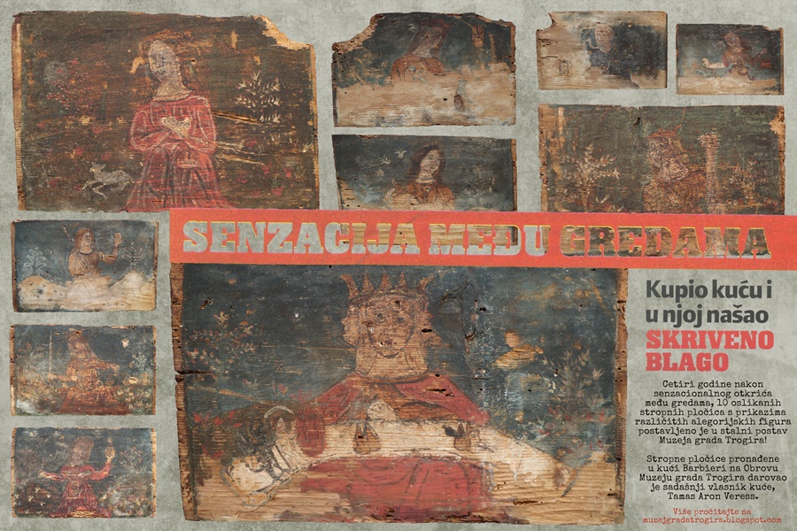 Oslikane stropne pločice s prikazima različitih alegorijskih figura, nakon restauracije postale su dio stalnog postava Muzeja grada Trogira. Stropne pločice pronađene su u kući Barbieri na Obrovu, a Muzeju ih je darovao sadašnji vlasnik kuće, Tamas Aron Veress iz Mađarske.