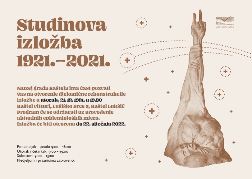 Muzej grada Kaštela najavljuje otvorenje djelomične rekonstrukcije Studinove izložbe u utorak, 21. prosinca 2021. u 19.30, u kaštelu Vitturi. Izložba ostaje otvorena do 22. siječnja 2022.