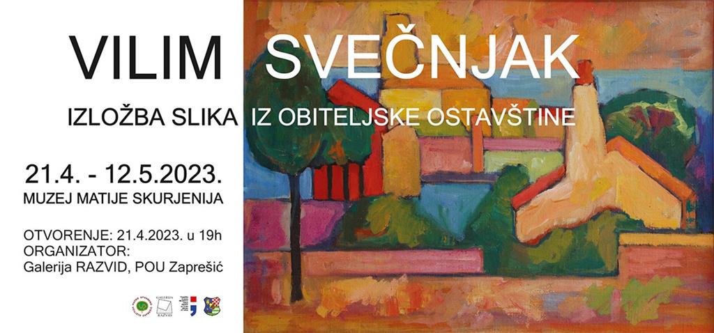 Galerija Razvid (POU Zaprešić) najavljuje izložbu slika iz obiteljske ostavštine hrvatskog slikara i grafičara Vilima Svečnjaka (Zagreb, 12. VII. 1906. – Zagreb, 3. VI. 1993.), koja se otvara 21. travnja u Muzeju Matije Skurjenija u Zaprešiću.