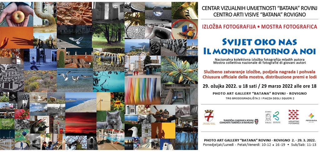Službeno zatvaranje izložbe fotografija 'Svijet oko nas - 2021.' uz dodjelu nagrada održat će se u utorak 29. ožujka 2022. u 18.00 sati, u galeriji Batana u Rovinju.